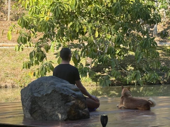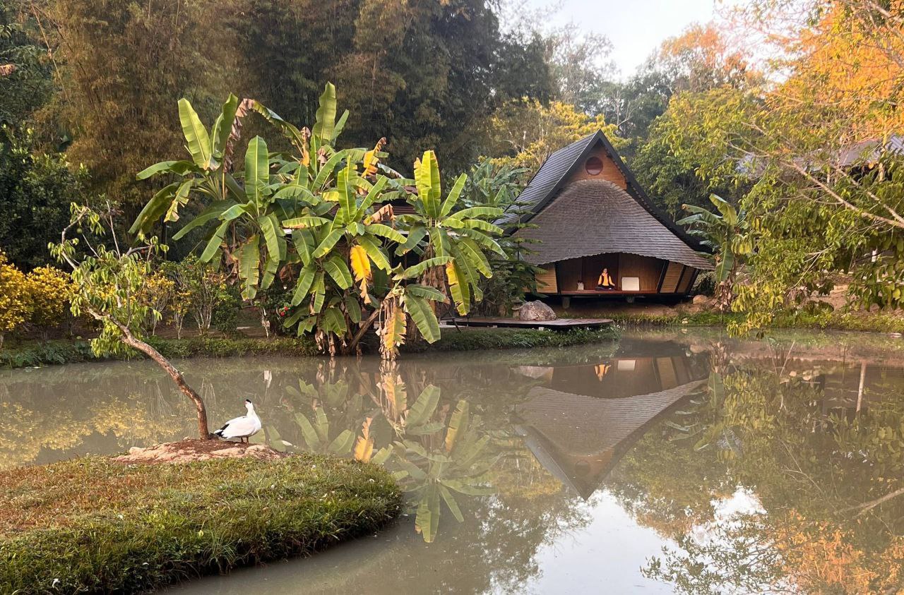 Ну и конечно, в ретритном центре Kamin Springs Forest Retreat просто очень красиво — это большой фруктовый сад, рисовые поля, ущелье, скрытое от посторонних глаз и соседей, где можно гулять и дышать, где по утрам всё затянуто туманами, где беседки, пруды и ручей, прекрасный современный зал с деревянным полом, вкуснейшая северо-тайская еда, хозяйка Сантри и администратор Брендон, оба с большим личным опытом практики и глубокой реализацией.